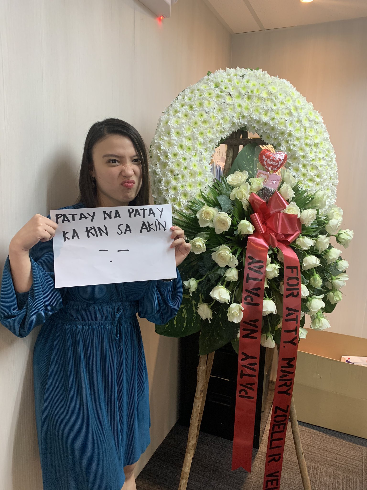 K Manuel On Twitter Omg A Workmate Received Flowers This Valentines Hahaha Patay Na Patay Ako Sa Yo And Literal Na Pampatay Na Bulaklak Tapos Dinala Sa Office I Cannot Hahahahaha Https T Co G0bay641ti