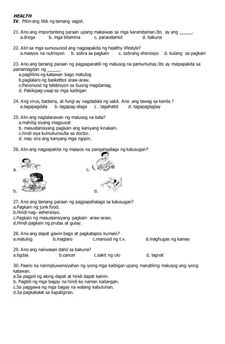 Piliin ang letra ng tamang sagot. Apula dilaw at. Pula berde at kahel.
