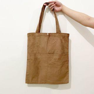 Metrolook Corduroy Tote Bag Oak Green Gray Grey Women S Fashion Bags Wallets Tote Bags On Carousell